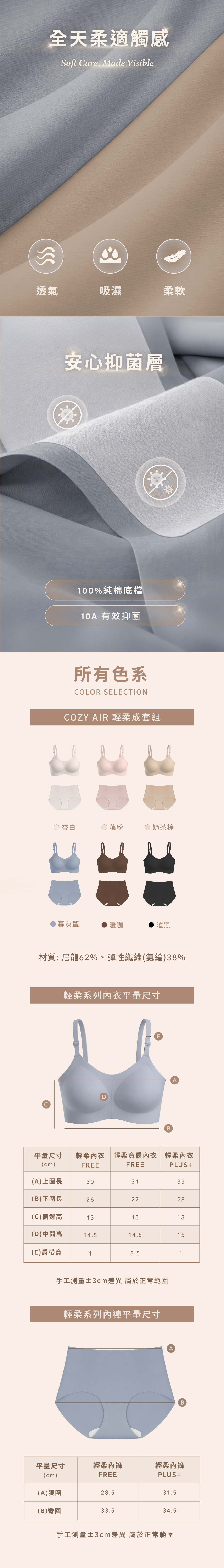 Colors|曜黑、杏白、奶茶棕、藕粉、暖咖、暮灰藍