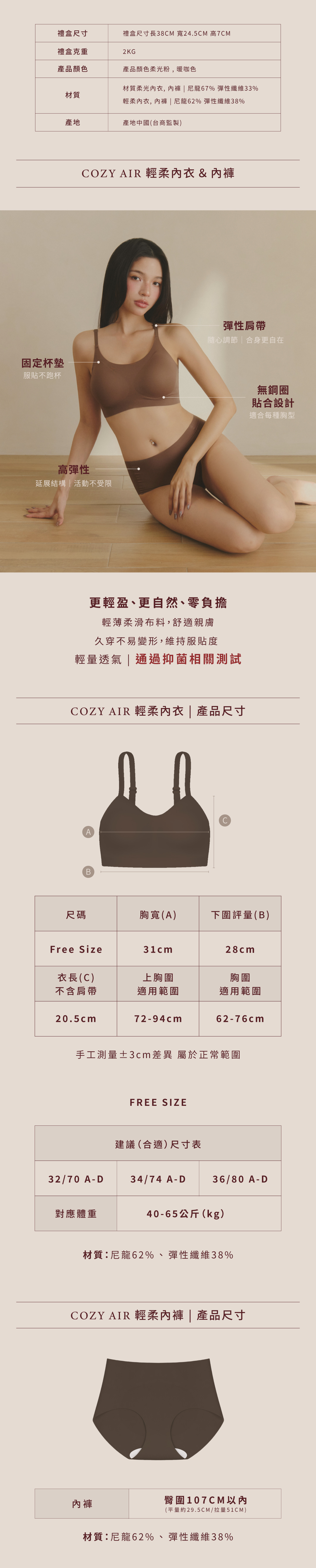 - Cozy Air 輕柔內衣成套組 | 暖咖色