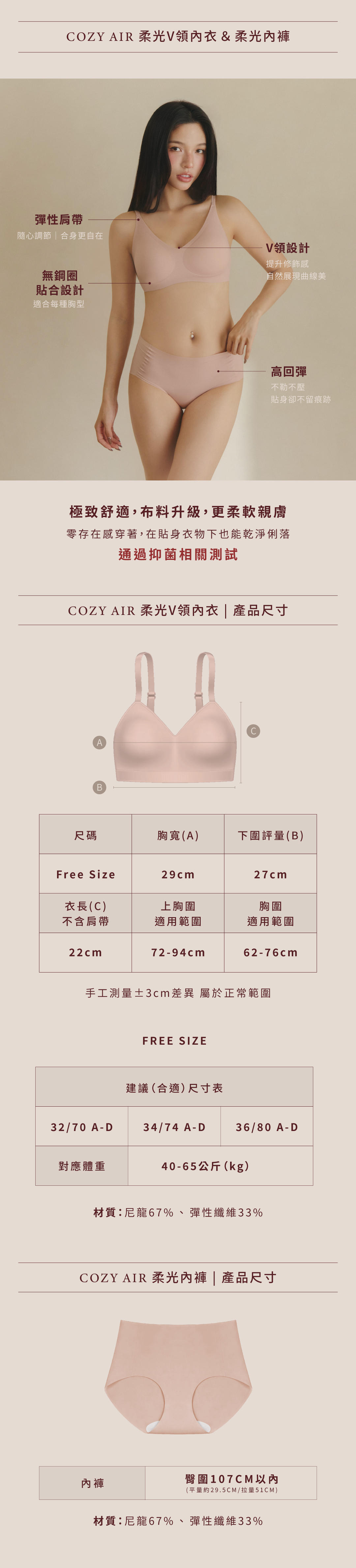 - Cozy Air 柔光V領內衣成套組 | 柔光粉