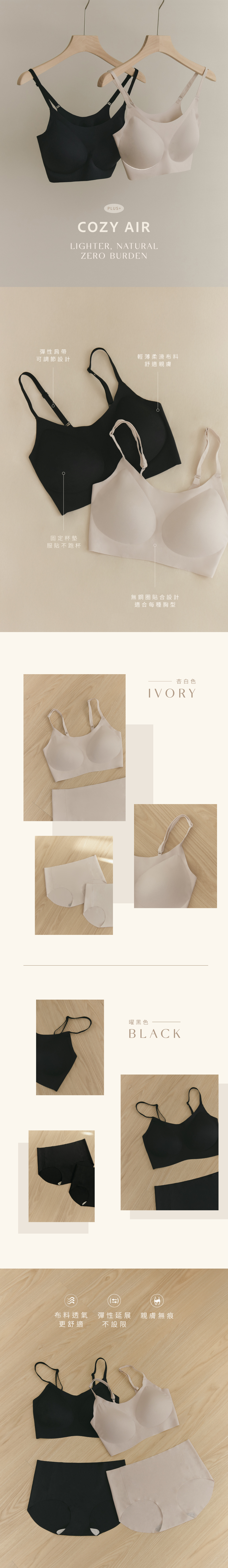 ‧ 輕薄柔滑布料,舒適親膚